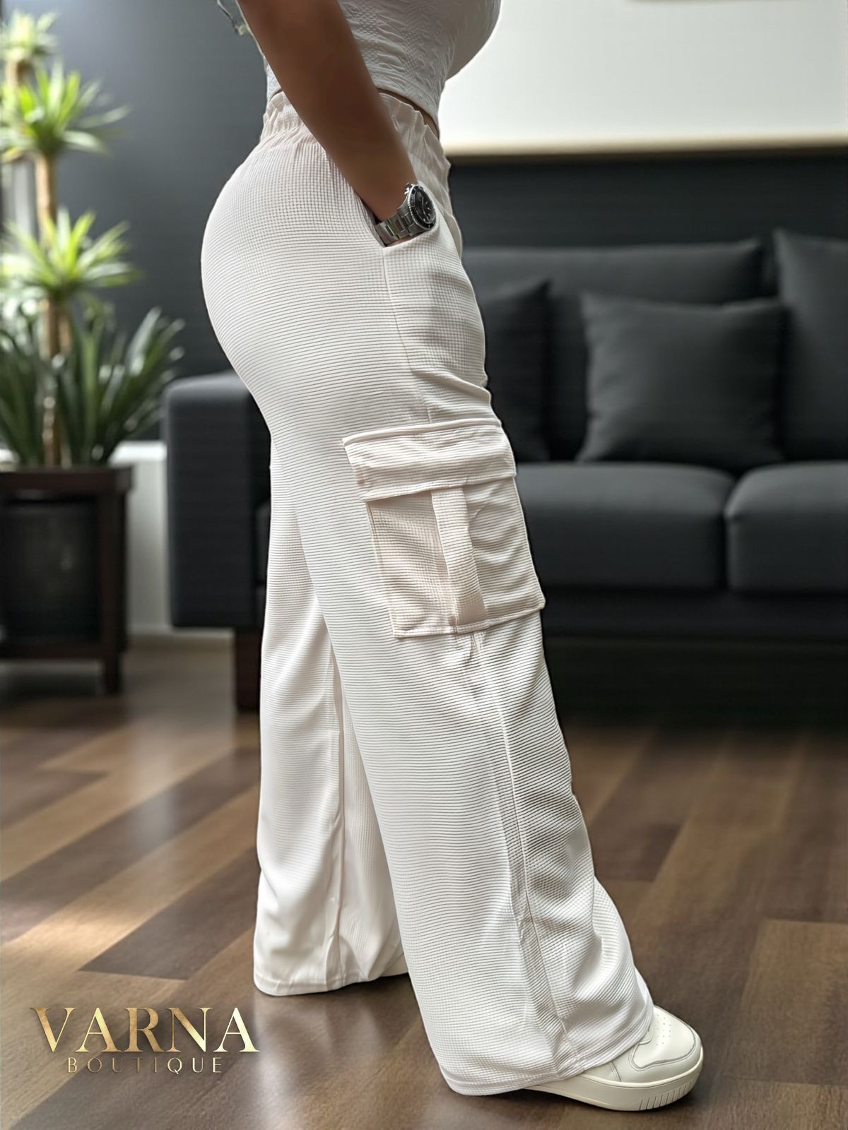 Diseñado en tela galleta stretch, que se ajusta suavemente y te brinda comodidad todo el día. Su silueta ancha y bolsillos laterales le dan ese estilo moderno, versátil y súper chic que puedes llevar tanto casual como elegante.